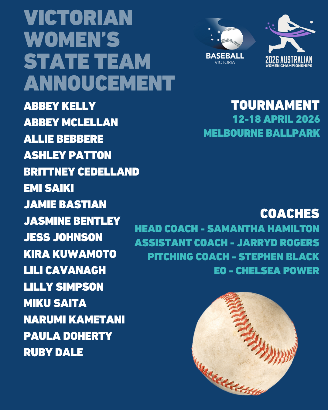 Another epic week of baseball nationals awaits with the 2026 Australian Women's and Youth Women's Championships returning to Melbourne Ballpark in April. The AWC runs from 12-18 April and the AYWC is set for 14-18 April.